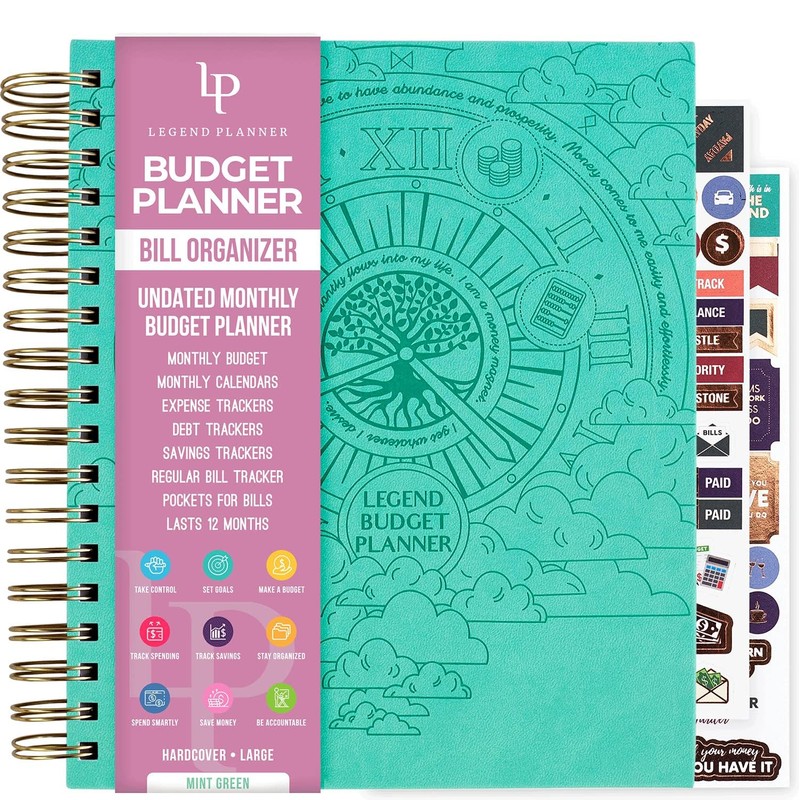 Legend Budget Planner & Monthly Bill Organizer with Pockets – Home Finance & Expense Tracker – Notebook for Household Budgeting (Mint Green)