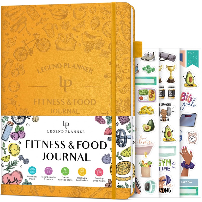 Legend Fitness & Food Journal – Nutrition & Workout Planner with Exercise Calendar & Nutrient Tracker – Gym Training & Diet Log Book for Women & Men – Lasts 3 Months, 7.5”x10” (Amber Yellow)