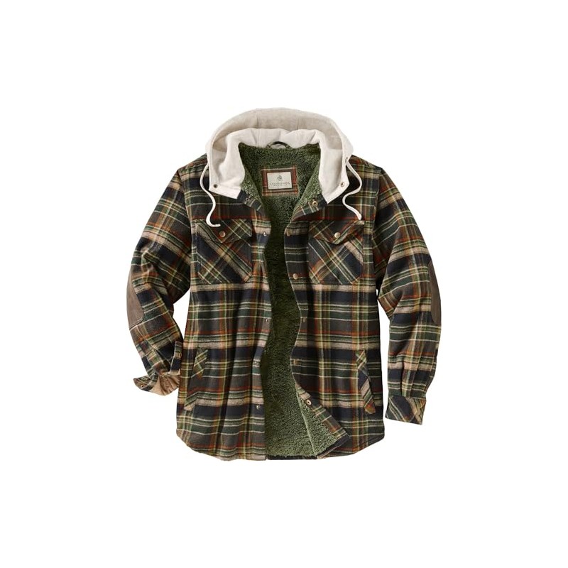 Legendary Whitetails Men's Size Hooded Shirt Jacket Flannel Berber Lined Polyfill Insulated, Stout Plaid, Large Tall