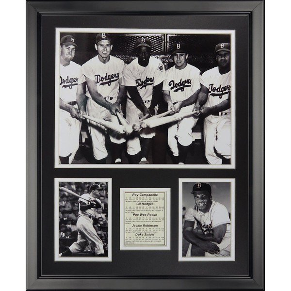 Legends Never Die Brooklyn Dodgers - 1950's B&W Framed Photo Collage, 16" x 20"