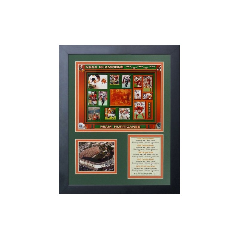 Legends Never Die Miami Hurricanes Five Time Champs Framed Photo Collage, 11 by 14-Inch, Black