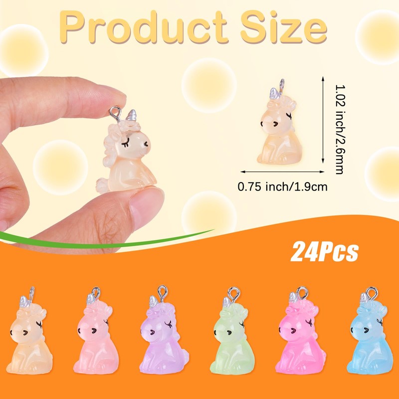 - 24 Luminous Charms Kit - 6 rainbow colors (4 each) spark DIY creativity. Mix & match tiny charms for necklaces, bracelets or miniature crafts