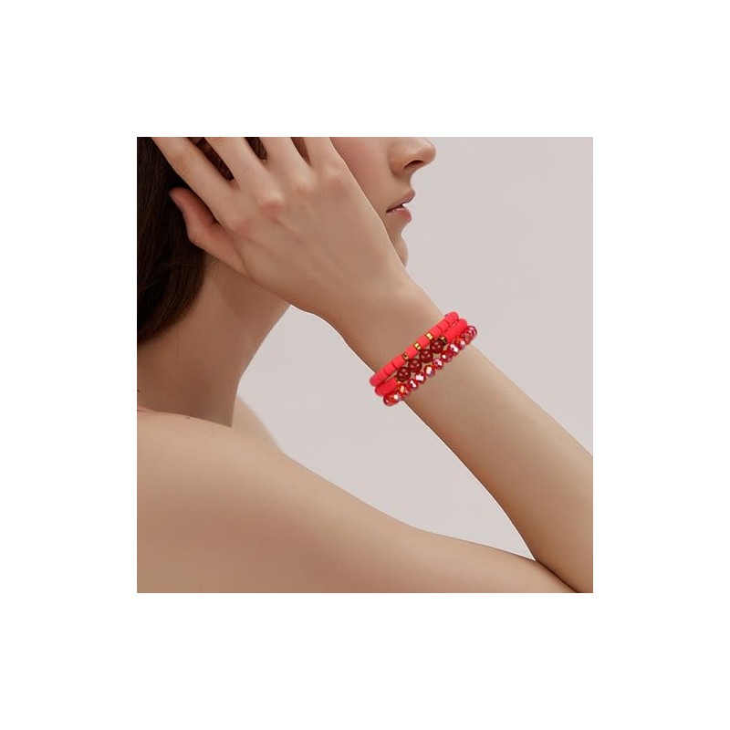 - Material:This bracelet is made of high-quality polymer clay beads and glass beads, which is lightweight, waterproof, safe and comfortable to wear.Designed with elasticity to fit most wrist sizes.Stretchable design ensures a comfortable fit on wrists up to 6.5 inches.