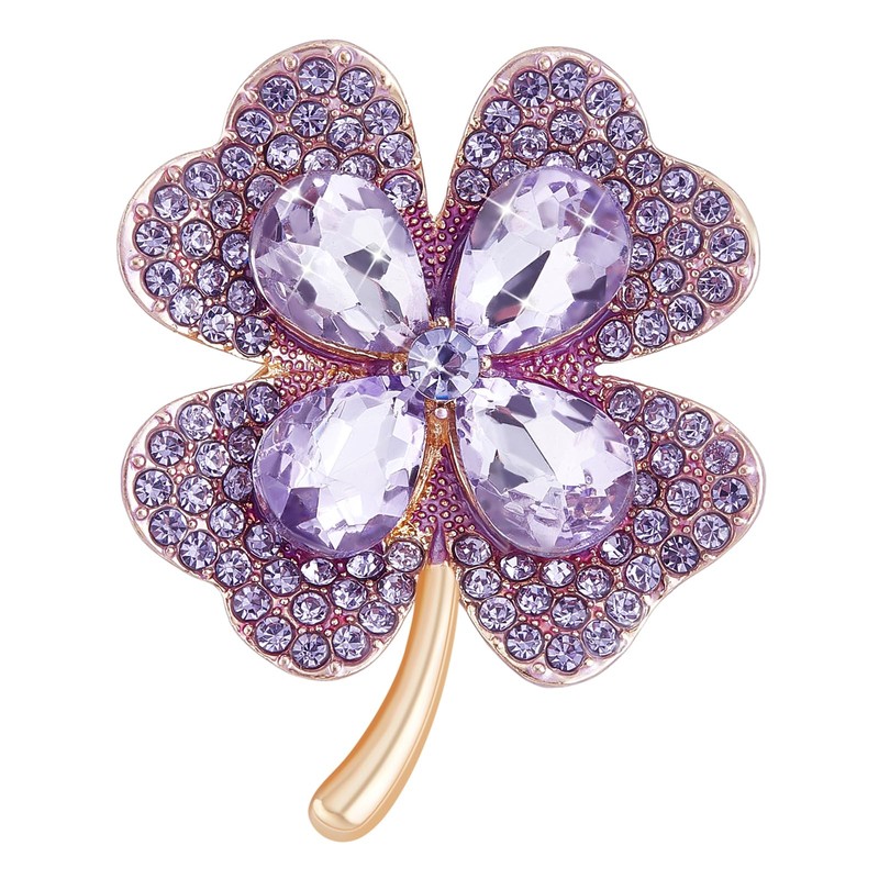LEGENTLISUR Brooches for Women uk Women's Brooches & Pins Four Leaf Clover Brooch Elegant Lucky Brooch Cubic Zirconia Brooch Women's Jewelry Party Favor (Purple)