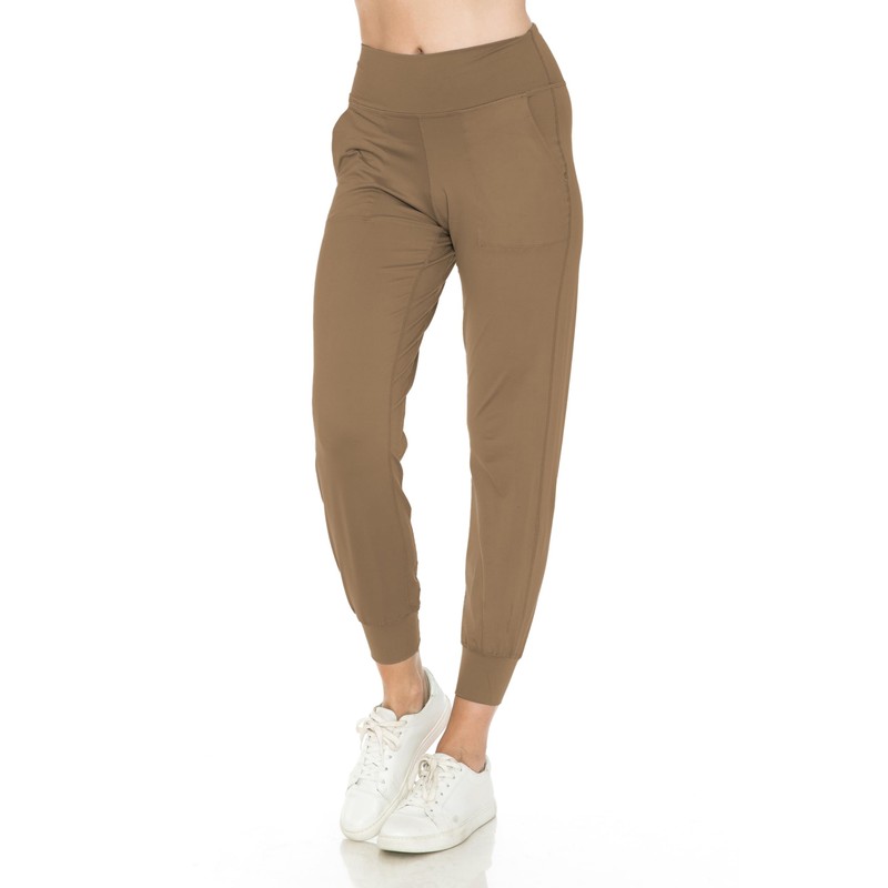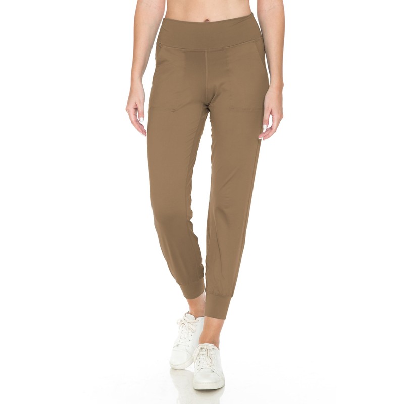 Leggings Depot ActiveFlex Jogger Yoga Pants Athletic Sweatpants (Full Length, Mocha, Small)