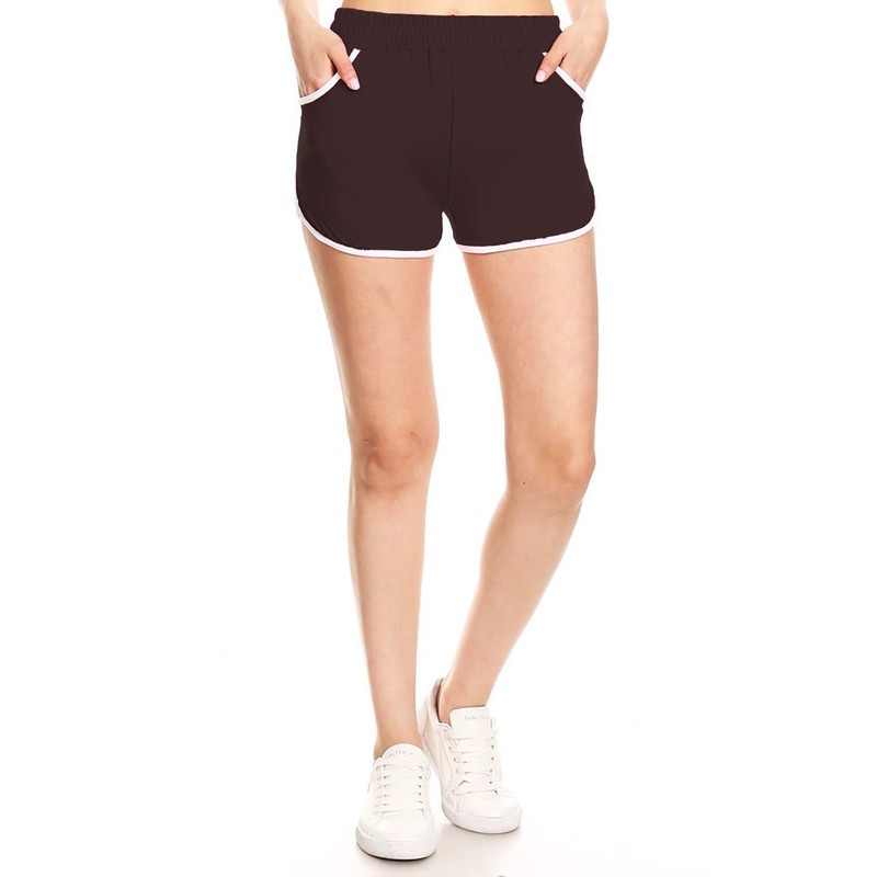 Leggings Depot RSB128-BROWN-M Solid Fashion Shorts w/Pockets, Medium