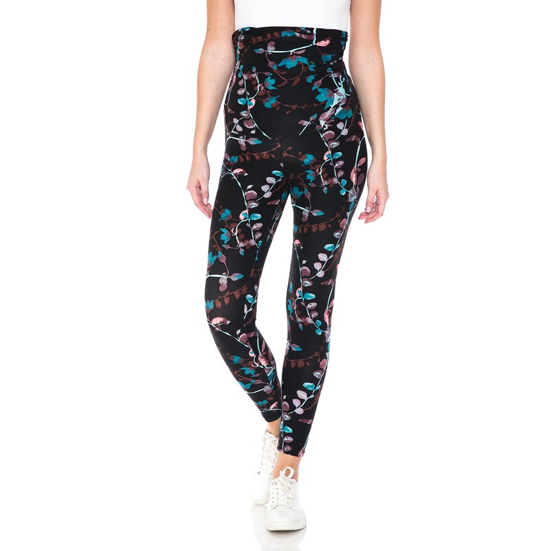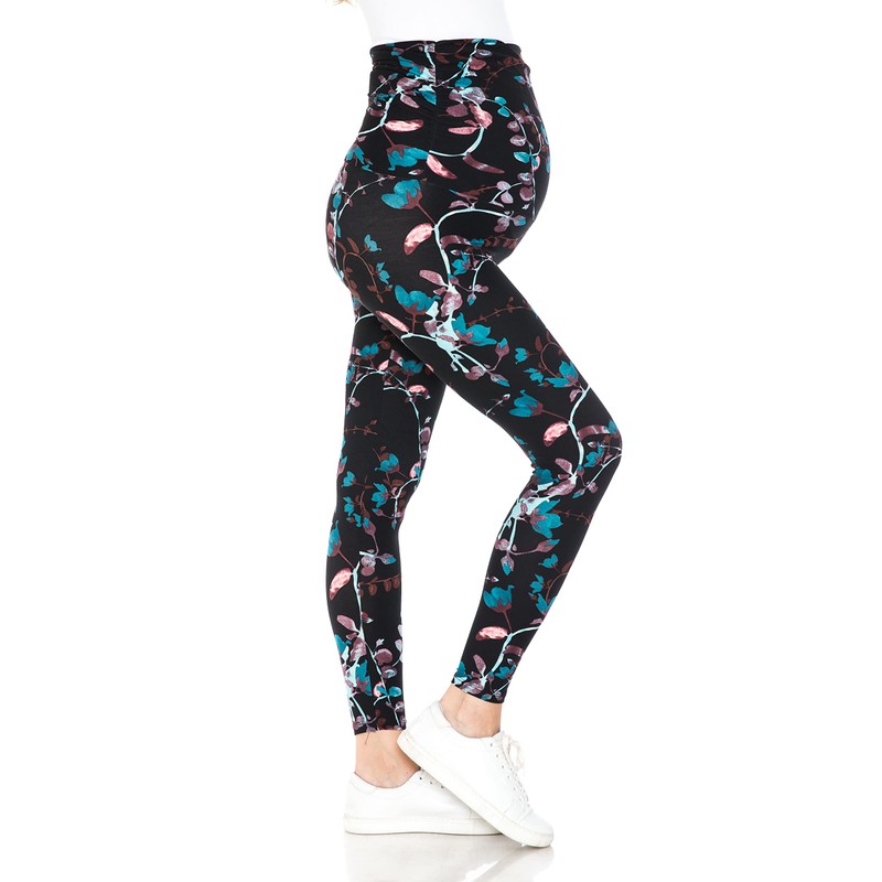 Leggings Depot Women's Maternity Leggings Over The Belly Pregnancy Casual Yoga Tights-R580 (Vine Charm, Medium)