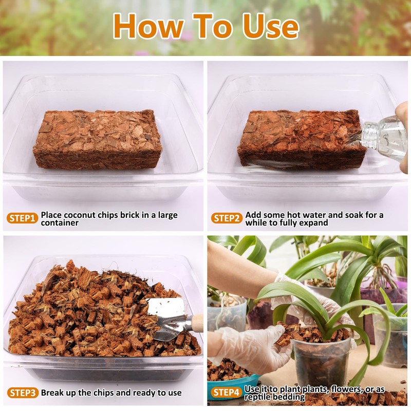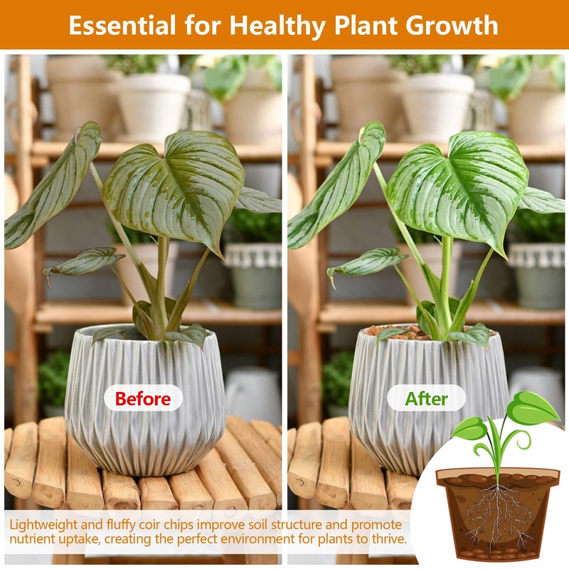 - Healthy Plants Growth: Our coco coir chips is an excellent mulch for indoor and outdoor plants, ensures adequate oxygen flow, improves soil nutrients and reduces weed growth; Good protection against harsh weather, frost protection to keep plants alive and thriving, ideal sustainable mulch for orchids and landscaping