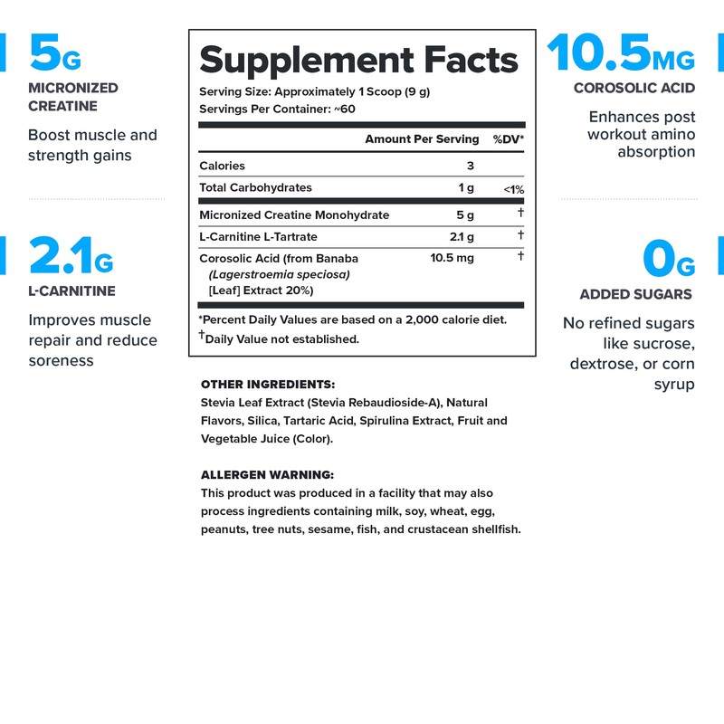 - Clean creatine powder for men and women and transparent label that shows exactly what's in every serving of our recovery drink and what's not (no proprietary blends or hidden ingredients).