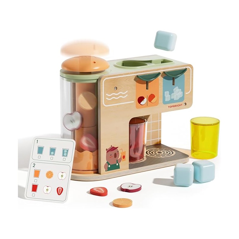- Educational Tool for Multi-skill Development: This pretend juice maker toy develops hand-eye coordination, motor skills, cause-effect understanding, direction recognition, classification, attention span, and social interaction. The wooden toy's lightweight design appeals to both boys and girls, making it ideal for toddler learning toys.