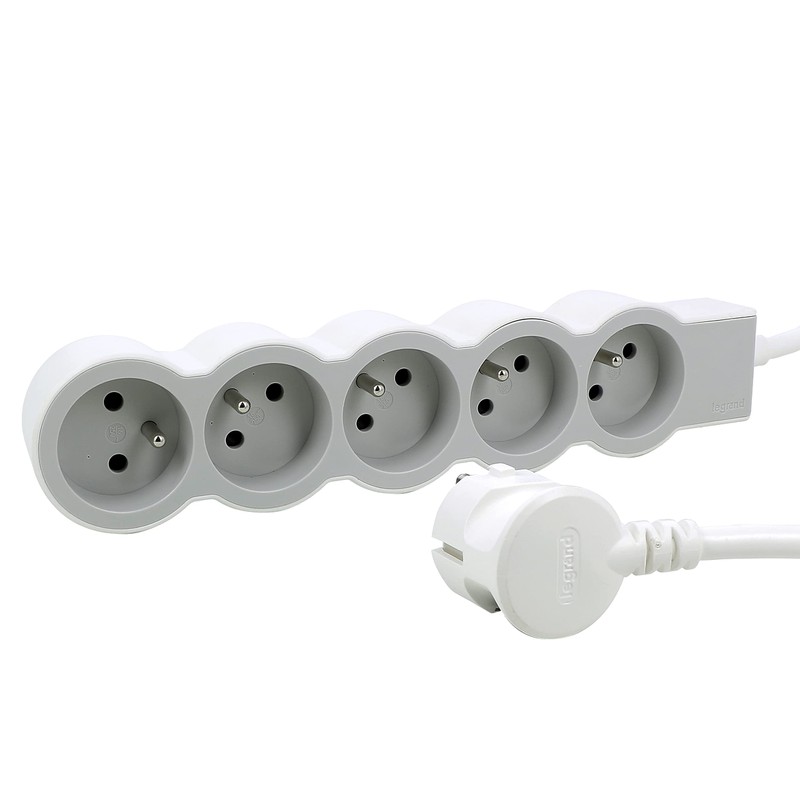 LEGRAND - Extra-Flat Power Strip - 5 Power Outlets with Earth - With 1.5 m Cord - White and Light Grey