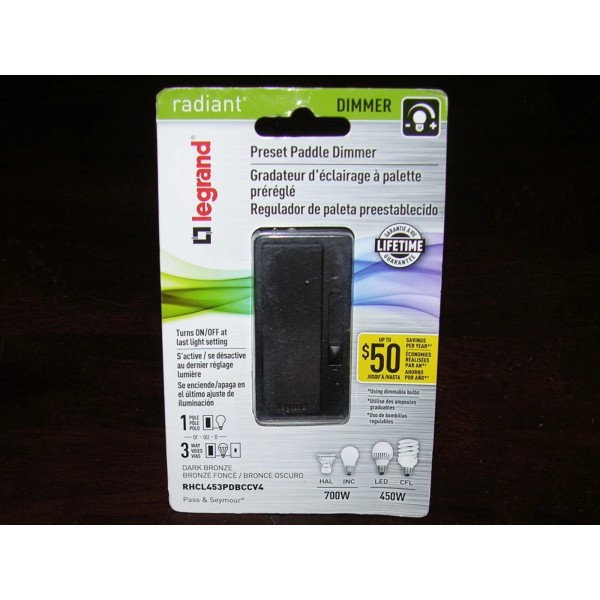 Legrand (NEW) LEGRAND RADIANT RHCL453PDBCCV4 450W / 700W BRONZE PRESET PADDLE DIMMER