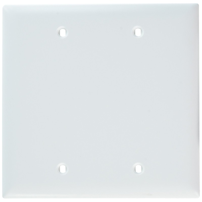 Trade Master Nylon Blank - Box Mounted Wall Plate, Two Gang, Easy Install, White. Molded of rugged, practically indestructible self-extinguishing nylon. Extra 3/16" width and height larger than standard size plates.