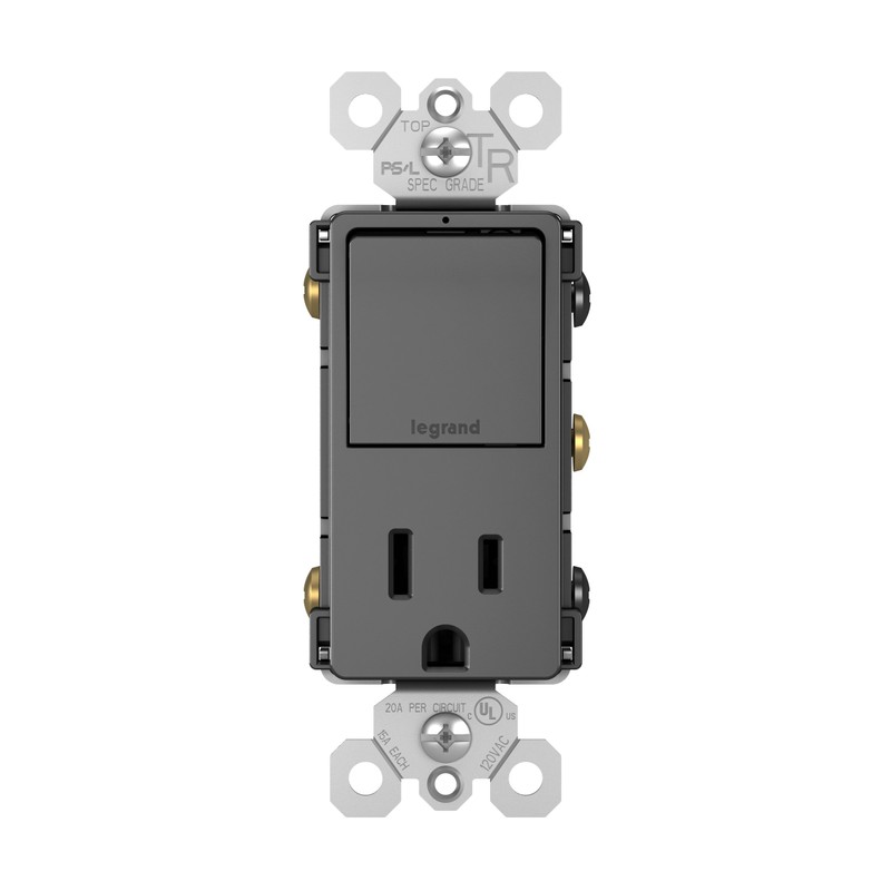 Legrand radiant 15 Amp Combination Switches, Rocker Wall Light Switch, Black, Combination 3-Way Switch + Outlet, RCD38TRBKCC6
