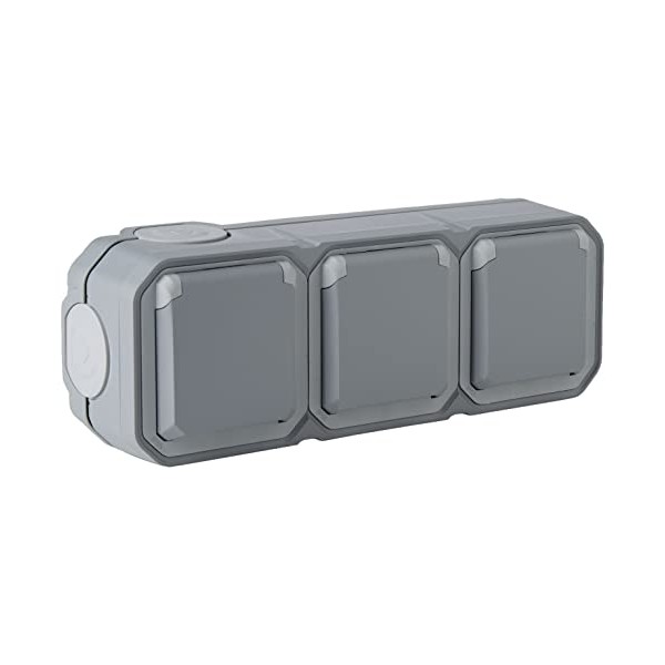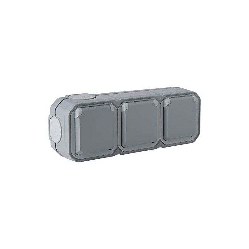 Legrand - Triple Socket with Waterproof Grounding Pre-wired with Perspex Flap 16A 250V Complete for Horizontal Mounting in Grey Surface Mount