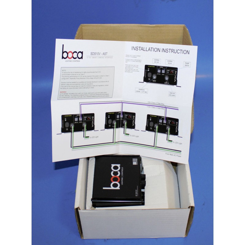 The BF-SDS10V-AST takes a 0-10V dimming signal and a fixed line voltage input and converts it to a phase-adaptive dimmed output for up to 1300W for a 277V load and 750W for a 120V load. The dimming type used (forward phase or reverse phase) is automatically selected by the BF-SDS10V-AST for optimal dimming performance. The BF-SDS10V-AST has a built-in slotted mounting bracket for surface mounting and is rated for install in plenum spaces.