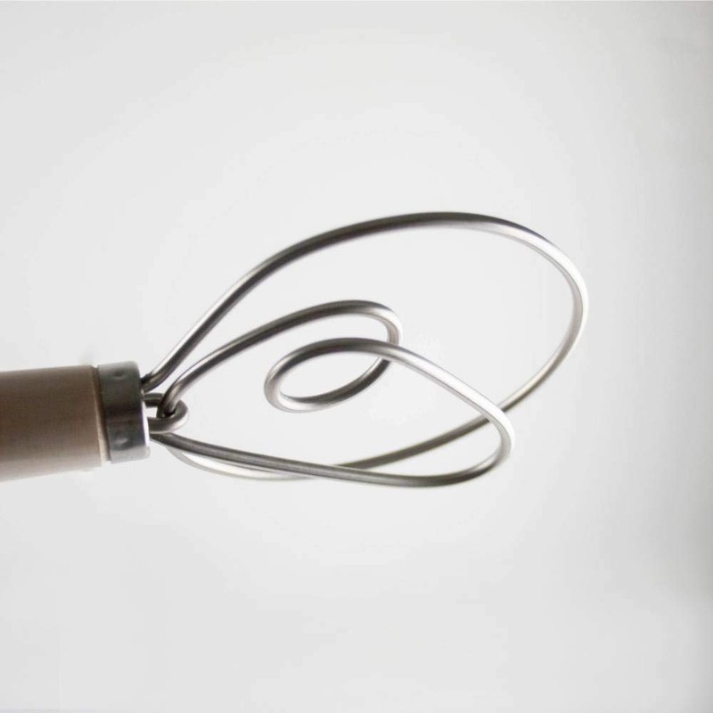 - Stainless steel whisk head with maple handle