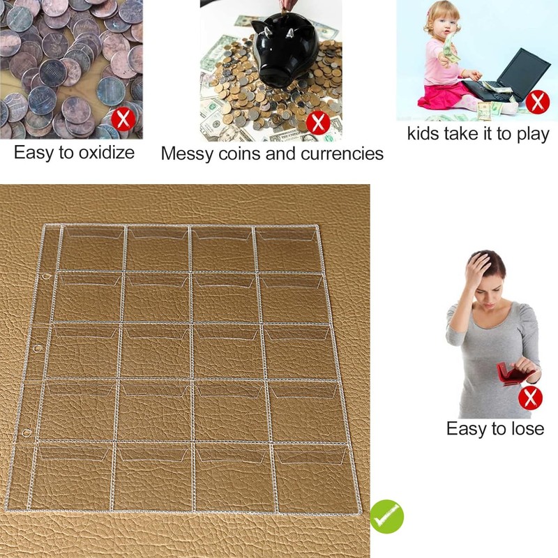 The clear pocket page is great unique gift for friends, yourself or your children who is loving coins collection; It's a great way to store and display your collection.