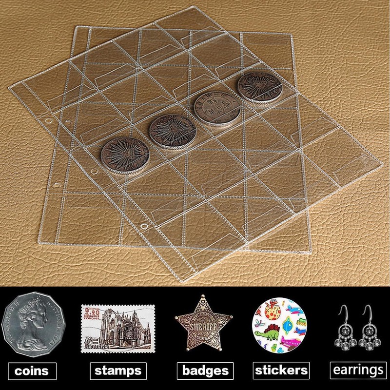 lehom Plastic Coin Pocket Pages Coin Collection Supplies Migavenn 10 Sheets 20 Grids Plastic Pocket Pages Coin Holders for Stamp Coin Medals Badge Collecting Supplies