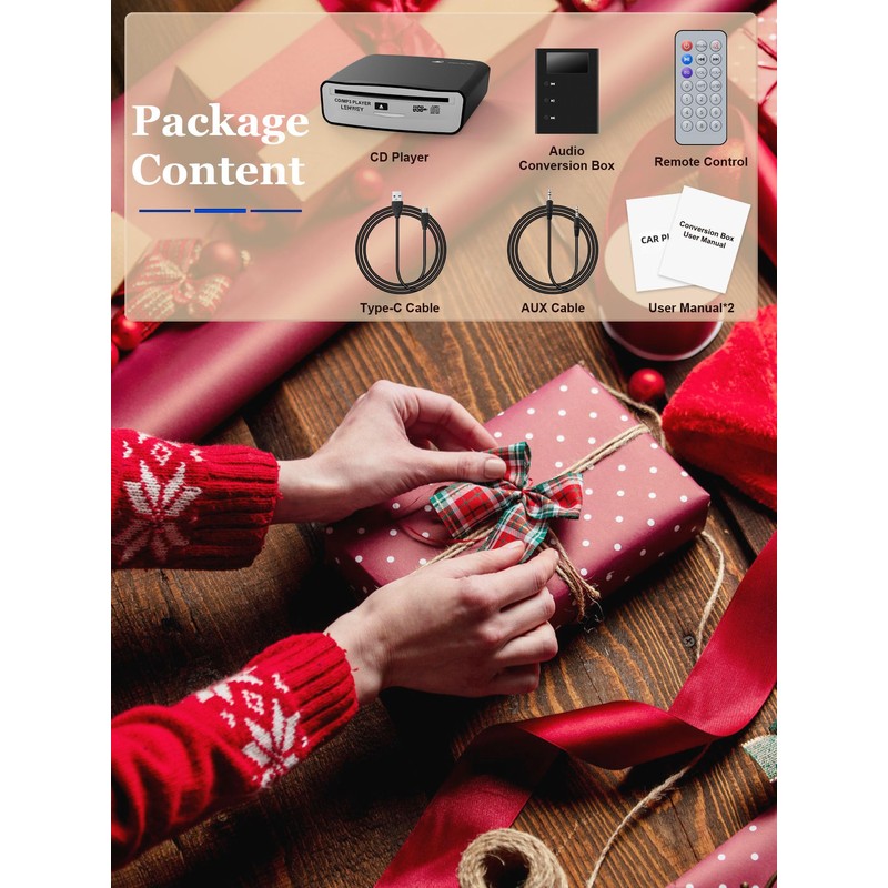 - Extra USB Cable - The CD player for car comes with a free, 1m USB cable. It allows you to place it anywhere you want including car center console, dashboard, glove box etc. It is much easier to change another disc when you want.