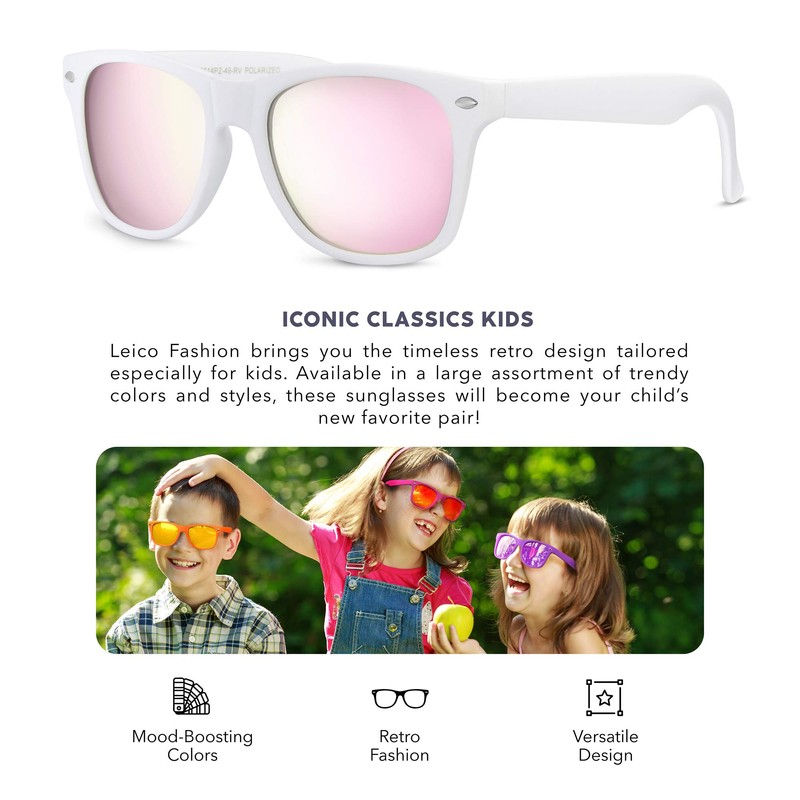• 😎 ELEVATE YOUR KID’S LOOK - Gear up your little boy or girl with Leico Fashion kids polarized retro sunglasses – an iconic accessory for beach days, holiday outings, and costume dress-up! Let your child shine in timeless style and stand out at every sunny escapade!