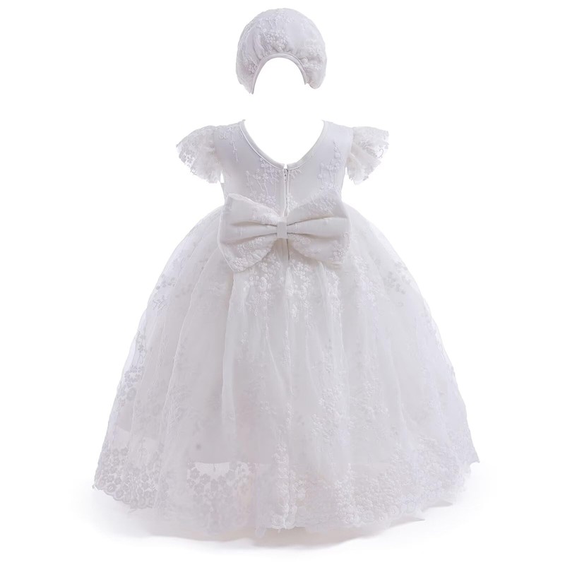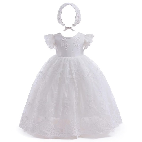 Leideur Baby Girl Christening Dress Long Blessing Dresses White Formal Wedding Dresses for Newborns, White (white 3)