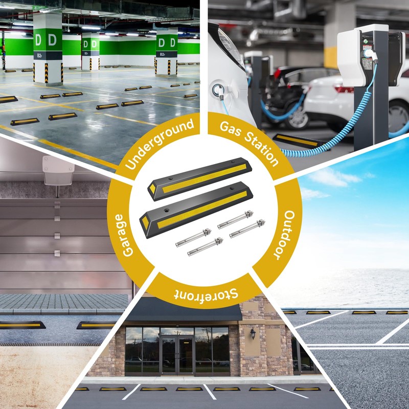 - Versatile Application: This polypropylene parking locator block is perfect for garages, driveways, parking lots, shopping centers, and storage facilities. It helps drivers park precisely every time, protects walls, other vehicles, and property from damage, and maintains order in parking areas.