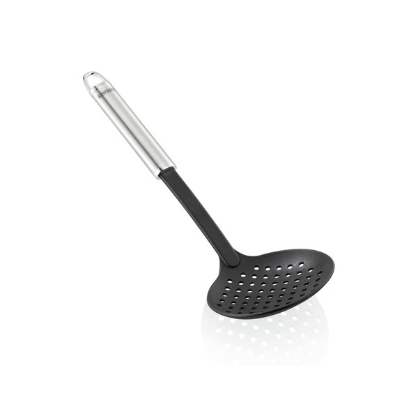 - Material – the sieve trowel is made of rust-proof stainless steel and heat-resistant nylon up to 160 °C and is ideal for scooping cooked food from the pot or serving at the table