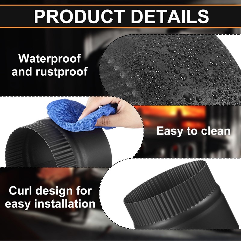 - Convenient Design: this 6-inch stove pipe has a curled edge design on one end, which can be easily installed into the pipe or fitting; The diameter is the same, which is convenient for installation, saving time and effort