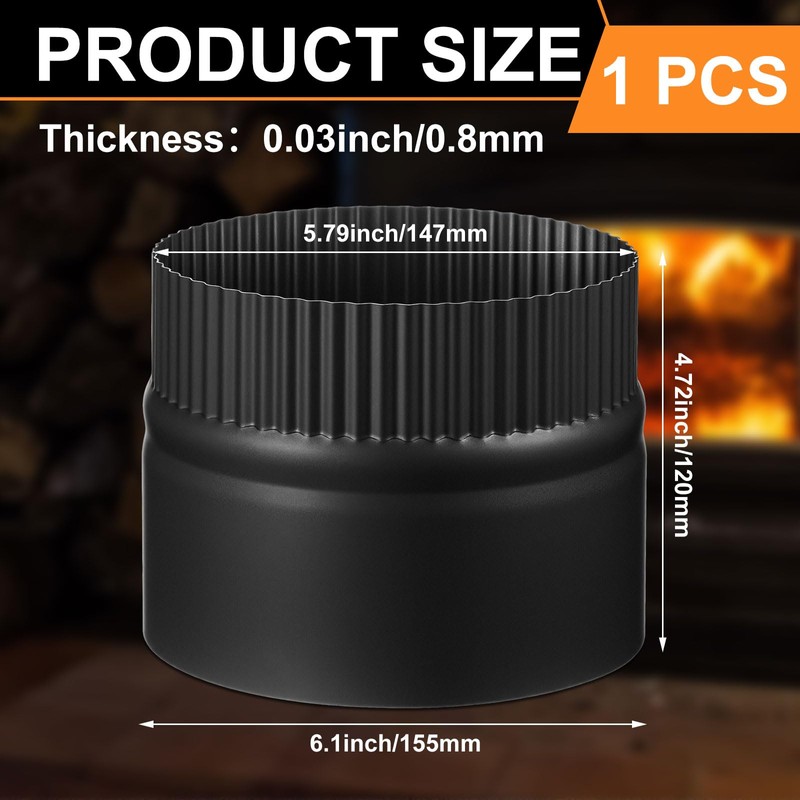 - Sturdy Material: this 6-inch Stove Collar Adapter is mainly made of carbon steel, not easy to break or deform, the surface is sprayed with high-temperature powder, heat-resistant and durable, it is your long-term partner