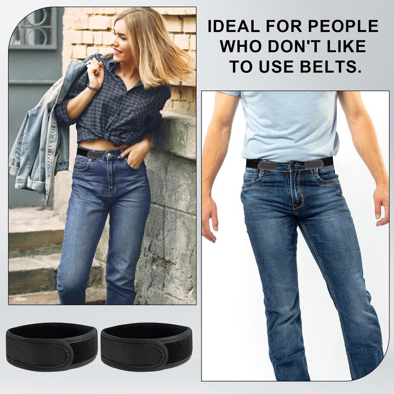 The Adjustable Invisible belt adds a touch of sophistication, making it a versatile choice for any occasion.Velcro + elasticated elastic band, easy to wear, allows you to attach it to both sides of your trousers' belt loops, ensuring your trousers are secure and comfortable. Buckle-less belt is made of high quality material, durable and wear-resistant, can be used for a long time.Featuring a sleek and slender design, this belt is ideal for Jeans, Trousers,