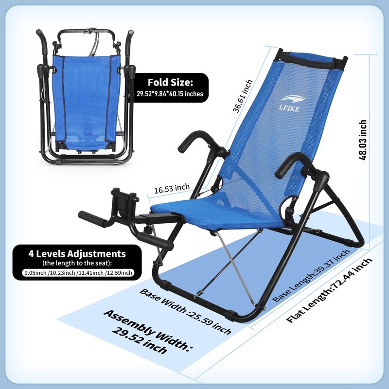 leikefitness Ab Exercise Chair Core Strengthening Lightweight Foldable Sport Abdominal Exerciser Strength Training Inversion Equipment AB3900(Blue)