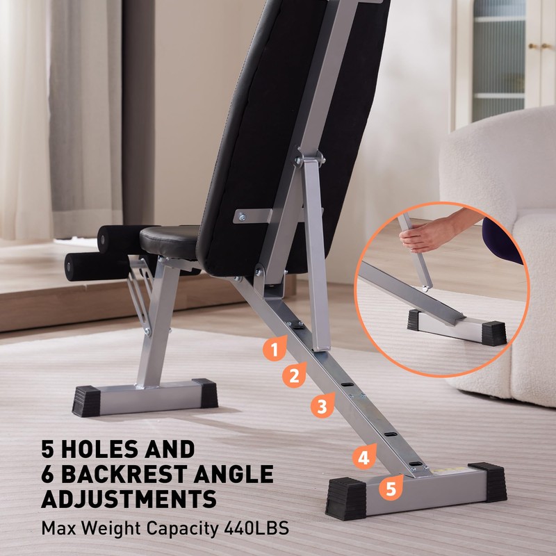 - Heavy Duty Constructure :This adjustable bench is designed with unique triangle structure and made of heavy-duty steel.440Lbs weight capacity gives you a safe and stable fitness experience.