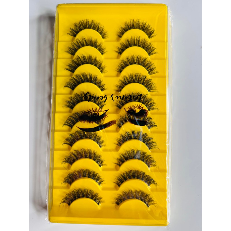 Leilanis Beauty Russian Strip Lash Set, 10 Pairs, 3D Curl, Lightweight Faux Mink, Cat Eye Shape (201), Transparent