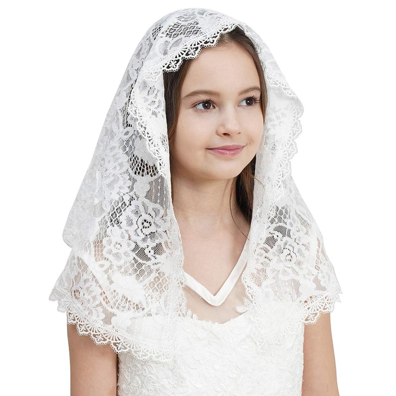 Leimandy First Communion Veil for Girls Catholic Chapel Mantilla Veil for Girls Catholic Holy communion veil F07 (Ivory Veil- Floral)