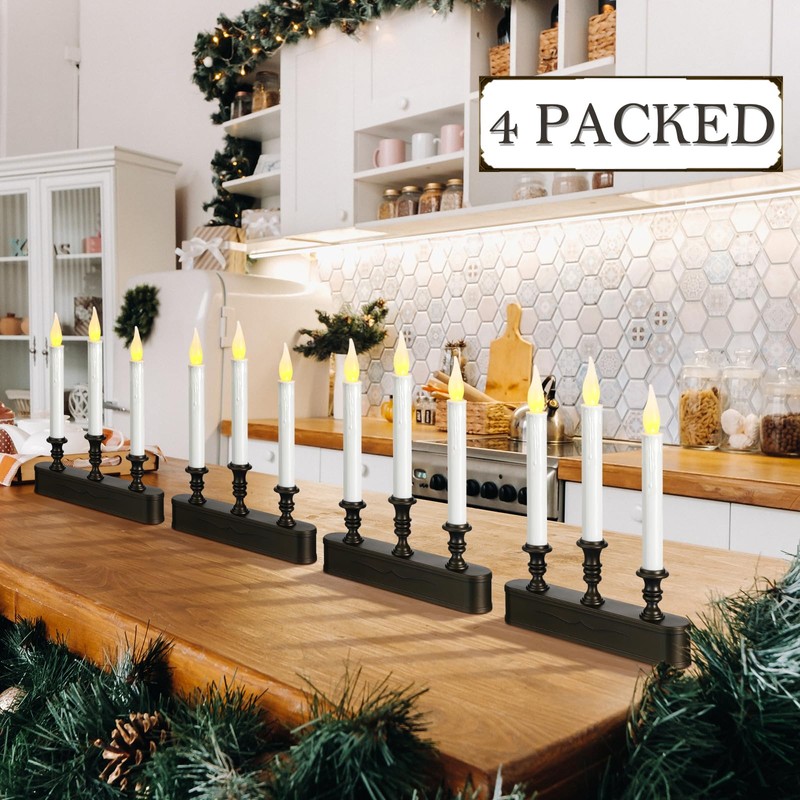 Leinuosen 4 Pack Christmas LED Window Candle 3 Window Candelabra with Black Base Battery Operated Flameless Candle with 8 Hour Timer for Christmas Window Weddings Party Home Decor(Without Battery)