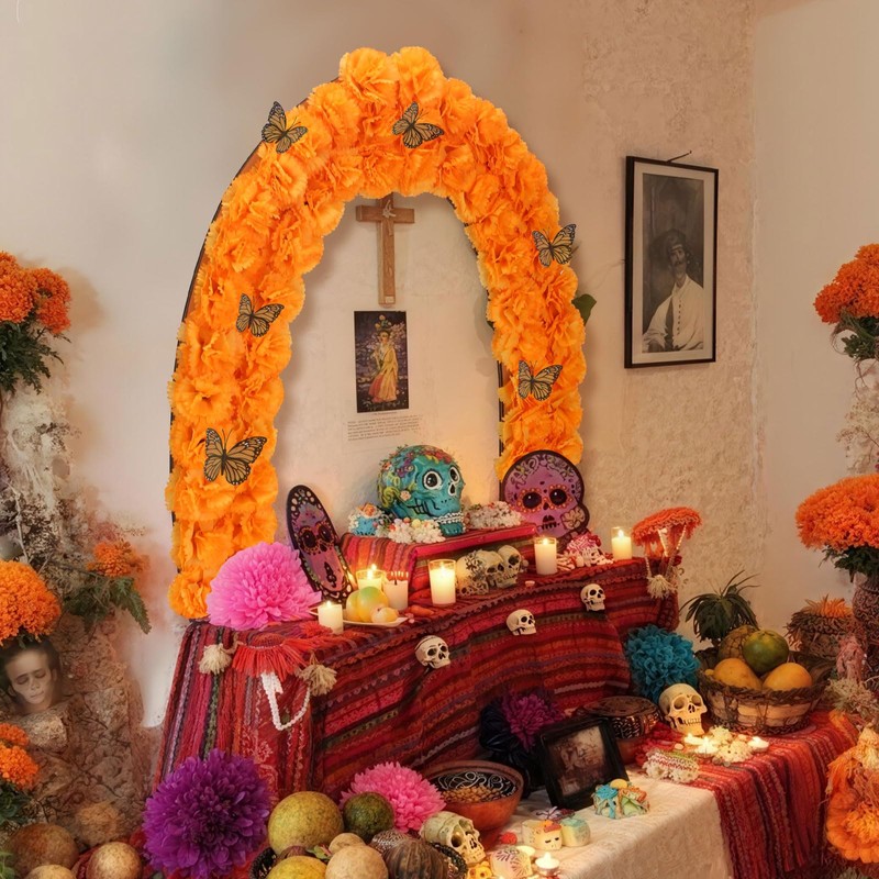 - Comprehensive Package: our package includes 1 pcs marigold garland wooden arch and 12 pcs butterflies; This dia de los muertos altar ensures you have everything necessary for stunning marigold flowers altar decoration, making it easy to achieve a cohesive and vibrant display