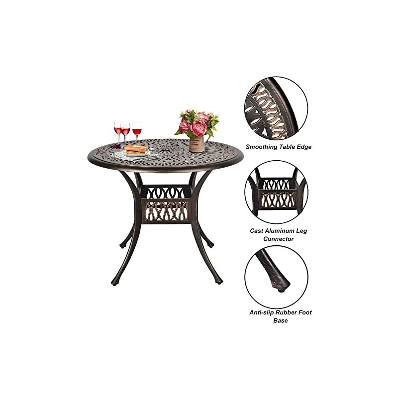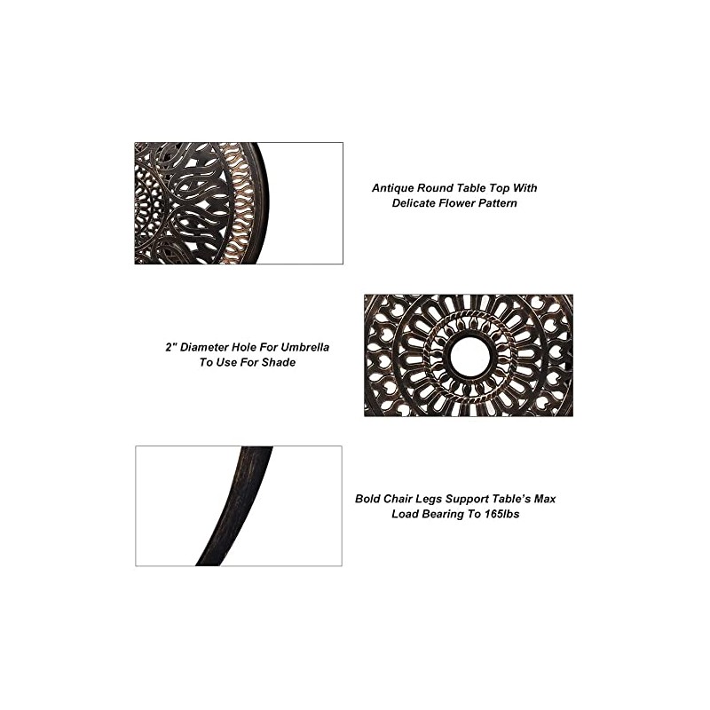 - 【All-Weather Rust-resistance for Outdoor】Including 1 patio round table in modern bronze color. Made from durable cast aluminum frame with rust resistant powder coating, protecting bistro set from rainy or exposure, a great choice for your home rement