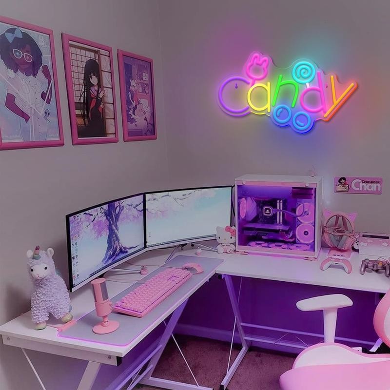 Leisure and entertainment neon lights,Save water beer neon sign,Ice Cream Neon Sign ,Candy Neon Sign ,Snacks Neon Sign USB Powered LED - Style: Candy Neon Sign