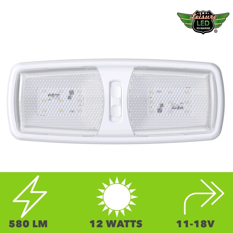 Leisure LED 12V Led RV Ceiling 620 Lumen Double Dome Light | RV Interior Lighting Fixture