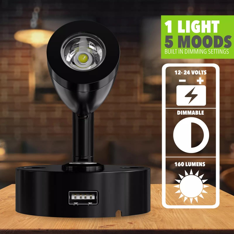 Leisure LED 2PK 12V RV LED Spotlight Small Size Reading Light USB Charging Port 350°Swivel