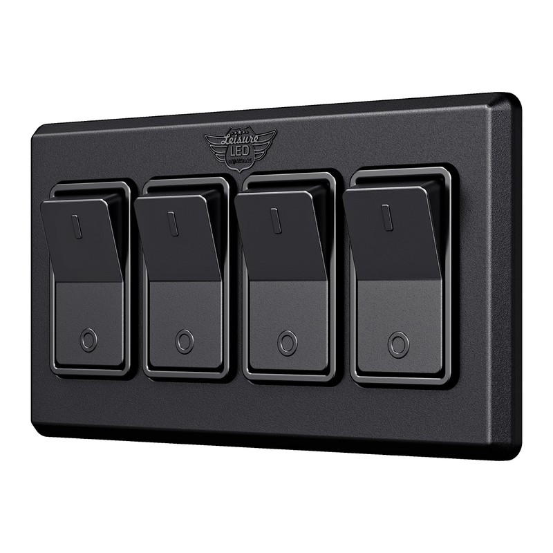 Leisure LED Modern Quadruple SPST On-Off Switch with Bezel, 12-Volt, for RV, Trailer, Camper, with Label Sticker (Black)
