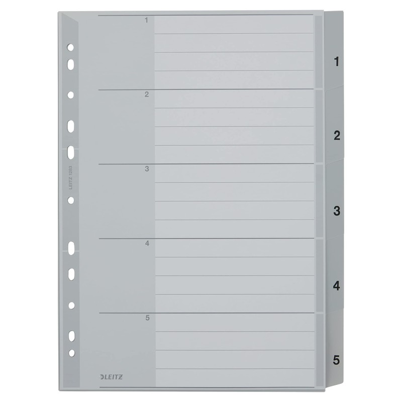Leitz 1–5 Plastic dividers, A4, PP, 5 Sheets, Grey