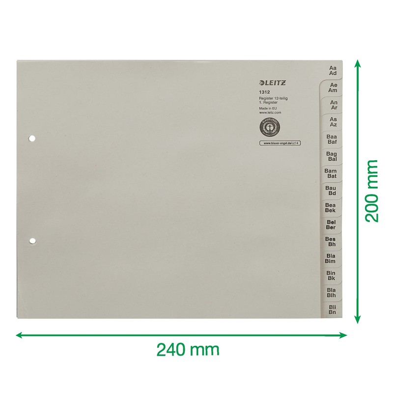 Leitz 13120085 Index Series A-Z A4 Paper for 12 Folders Grey