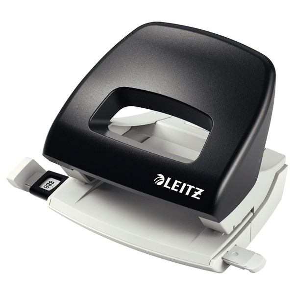 - Content: One Leitz hole punch NeXXt range, black, 50380095, dimensions (W x H x D): 85 x 84 x 137 mm, two hole punching, weight: 231 g