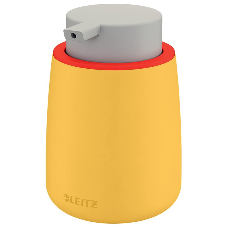 - Contents: 1 x Leitz Cosy Pump Dispenser, Dimensions (W x H x D): 85 x 135 x 85 mm, 295 g, Warm Yellow, 54040019