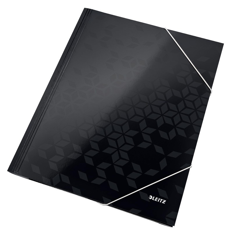 Leitz WOW 39820095 3-Flap Folder with Elasticated Closure and Cardboard Folder with Elastic Closure - Black