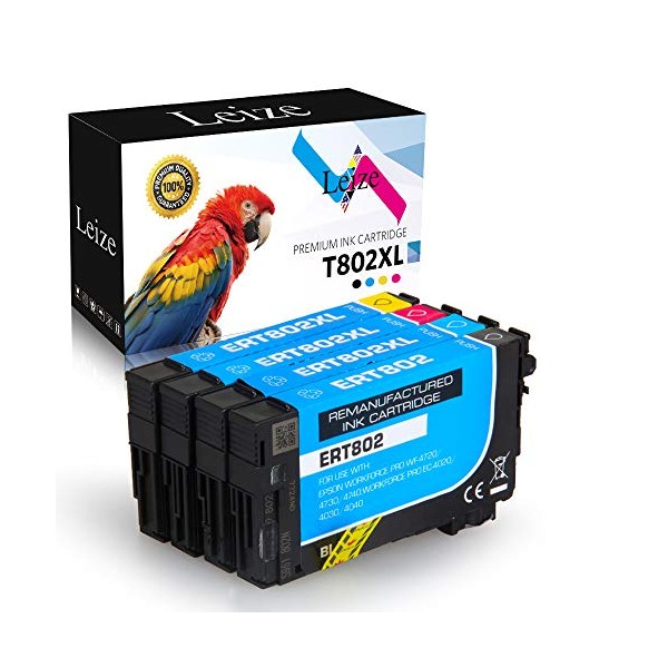 Leize Remanufactured Ink Cartridges for Epson 802XL T802XL T802 802 4-Pack (Black, Cyan, Magenta, Yellow), use for Epson Workforce Pro WF-4720 WF-4730 WF-4734 WF-4740 EC-4020 EC-4030 EC-4040