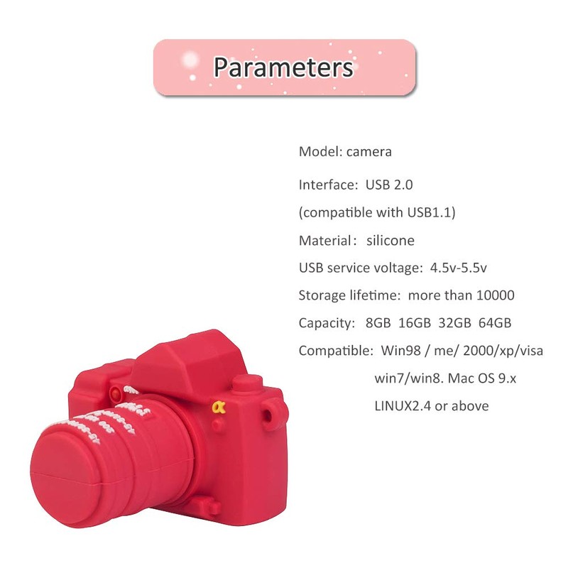 Leizhan Cute USB Flash Drive 32GB Camera Thumb Drive Pen Drive Data Storage Memory Stick Jump Drive, Red