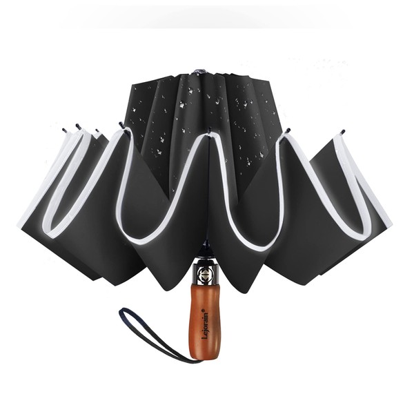 Lejorain Large Reverse Umbrella -50 Inch Windproof Folding Inverted Umbrella - Upside Down with Safety Reflective Strip